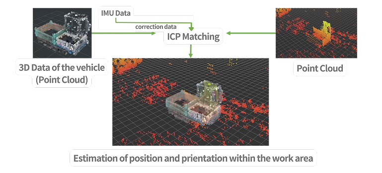 推定したい車両の3Dモデルデータを準備するだけで、「位置・姿勢・速度」のリアルタイム推定を実現できます。同じ点群データから、複数台・複数車種の車両の位置推定も可能です。